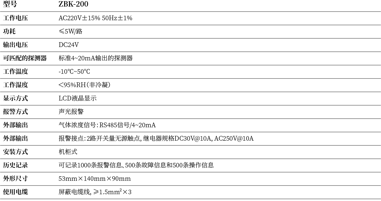 ZBK-200气体报警控制器可与我公司4~20mA电流输出的气体探测器组成工业用气体报警控制系统。当空气中有被测气体或者液体挥发时,探测器即产生与空气中被测气体浓度成正比的电流信号,该信号传给控制器,控制器经处理后显示被测气体浓度。当被测气体浓度达到或超过设定值时,控制器发出声、光报警信号并输出有关控制信号